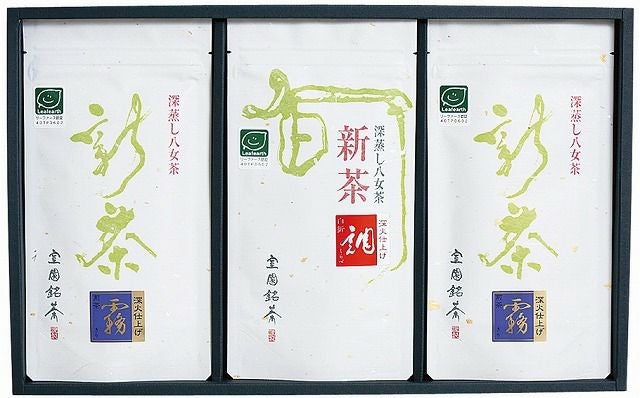 伝統的な八女茶の味を強く留めた煎茶『霧』と、高級煎茶の香味とやわらかな茎茶の甘味をブレンドした高級白折『調』の詰め合わせです。